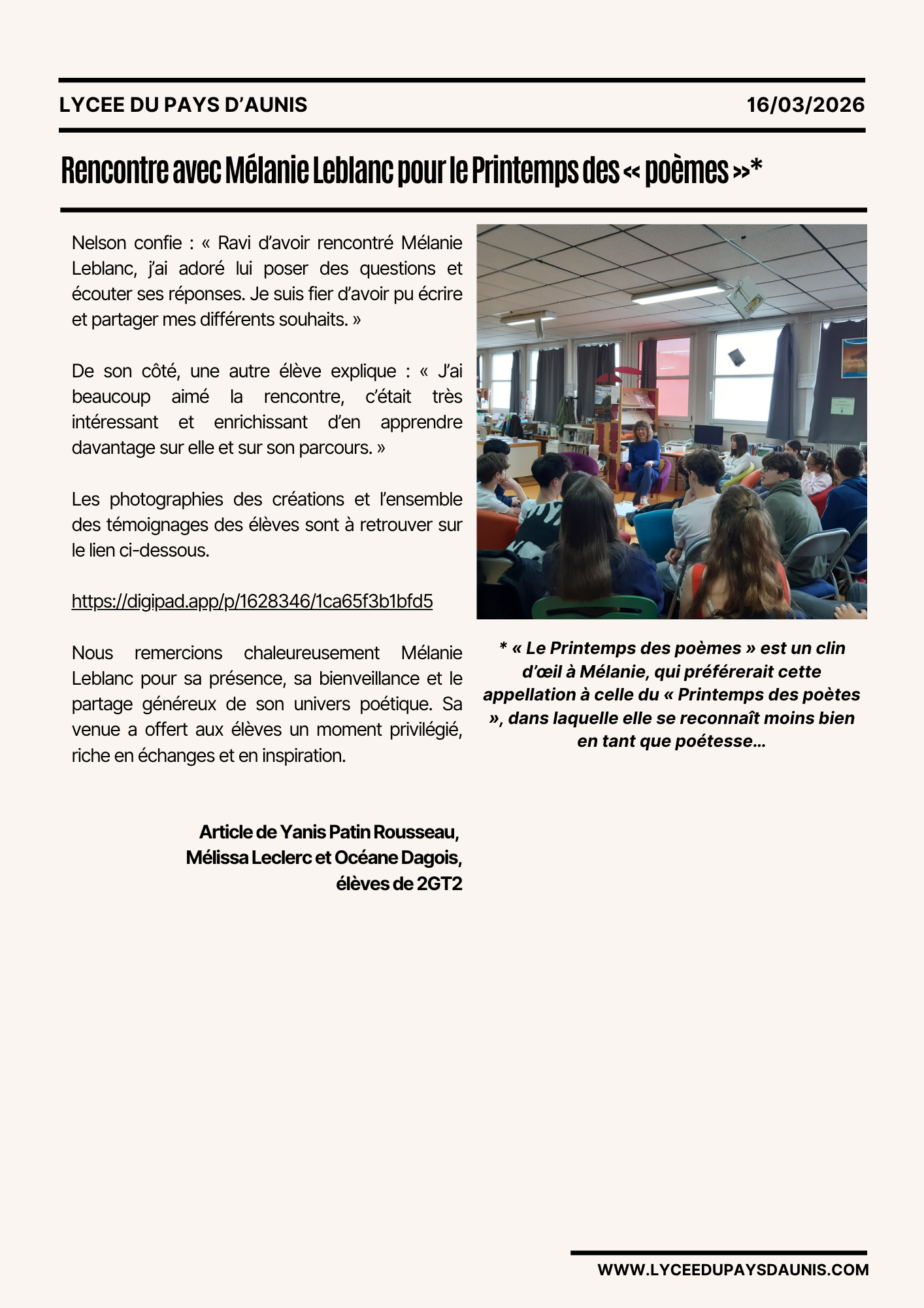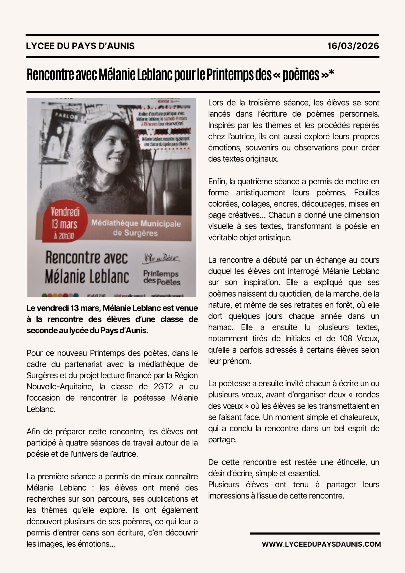 Rencontre avec mélanie leblanc pour le printemps des « poèmes »